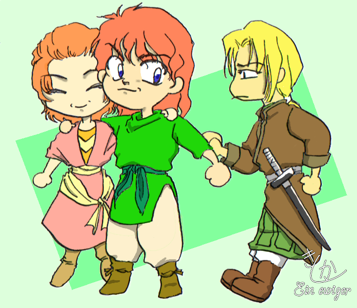携帯サイトのキリリクで、オリジナル小説のマインとメーネとアルセンのミニキャラです。