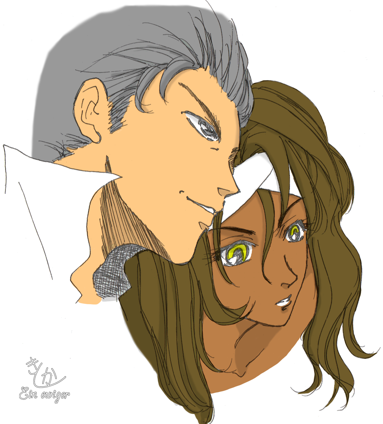 これを描いてて気づいたのですが、永遠のアルセン登場人物でメインの男達は何故かみんな髪が長いです、女性は短いのに(笑)