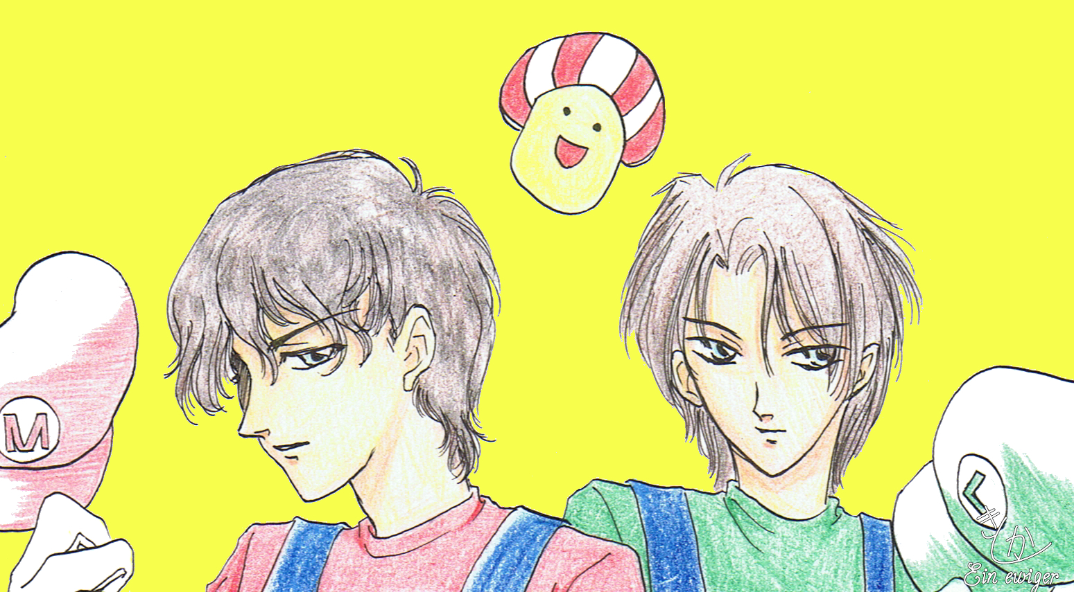 とりあえずマリオは髪型をなるべく忠実にしてみたのですが、途中「デルフィニア戦記」のウォルのいとこや「パタリロ!」のバンコランを思い出してしまいました。