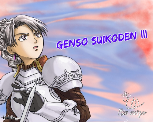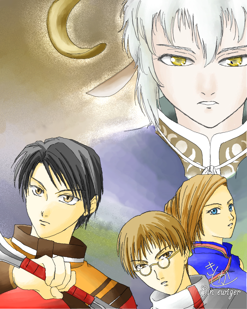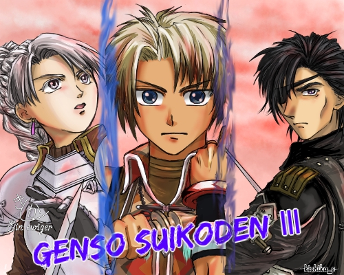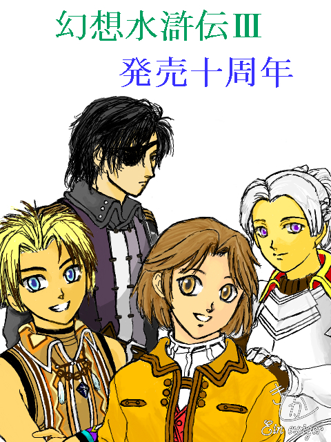 幻想水滸伝3の発売十周年に何か描こう!と思って描いたイラストなんですが、発売日を一日勘違いしてまして、慌てて仕上げたのでかなり雑です。